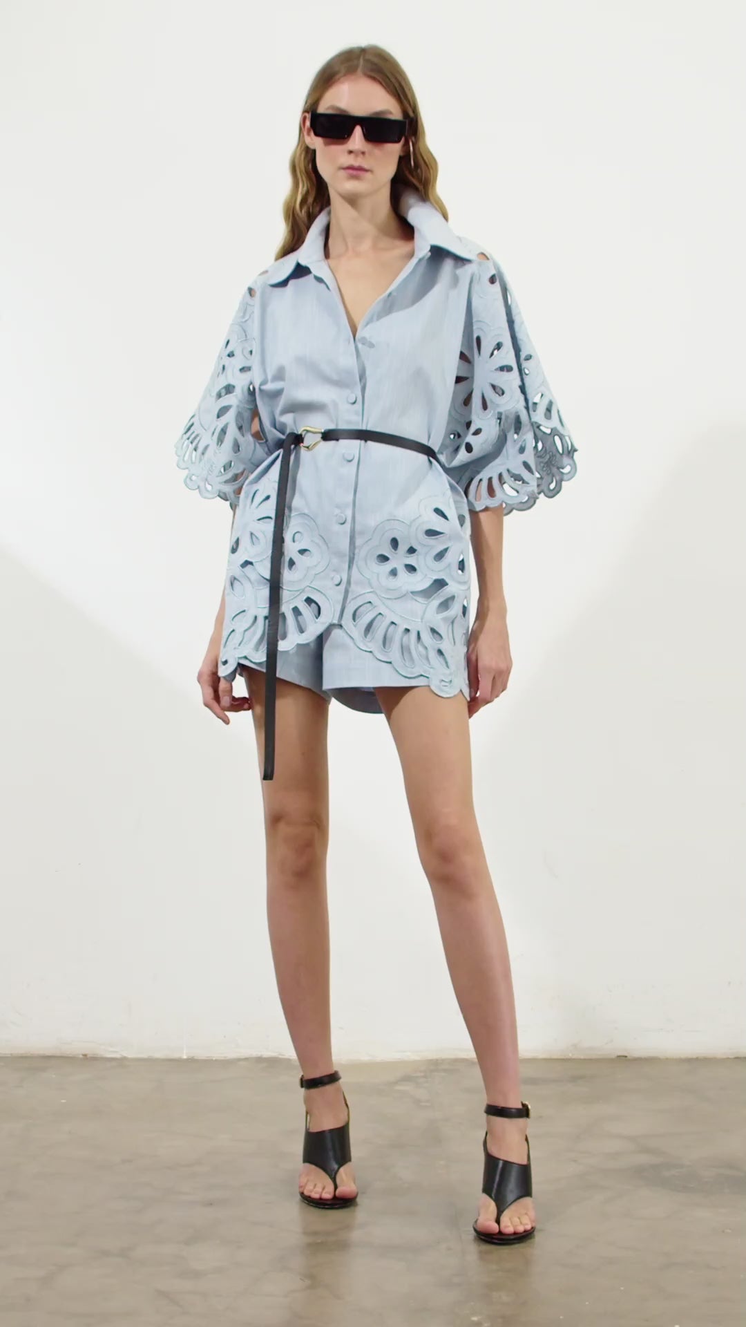 A Camisa Maxi Malta é uma peça que traduz frescor e elegância contemporânea. Confeccionada em linho 100%, ela ganha destaque pelo trabalho artesanal em recortes de rechilieu, que adicionam textura e sofisticação ao visual. A modelagem ampla, com mangas volumosas e comprimento alongado, cria um equilíbrio entre estrutura e fluidez. Use com shorts para um look leve de verão ou combine com calças de alfaiataria para uma produção refinada.