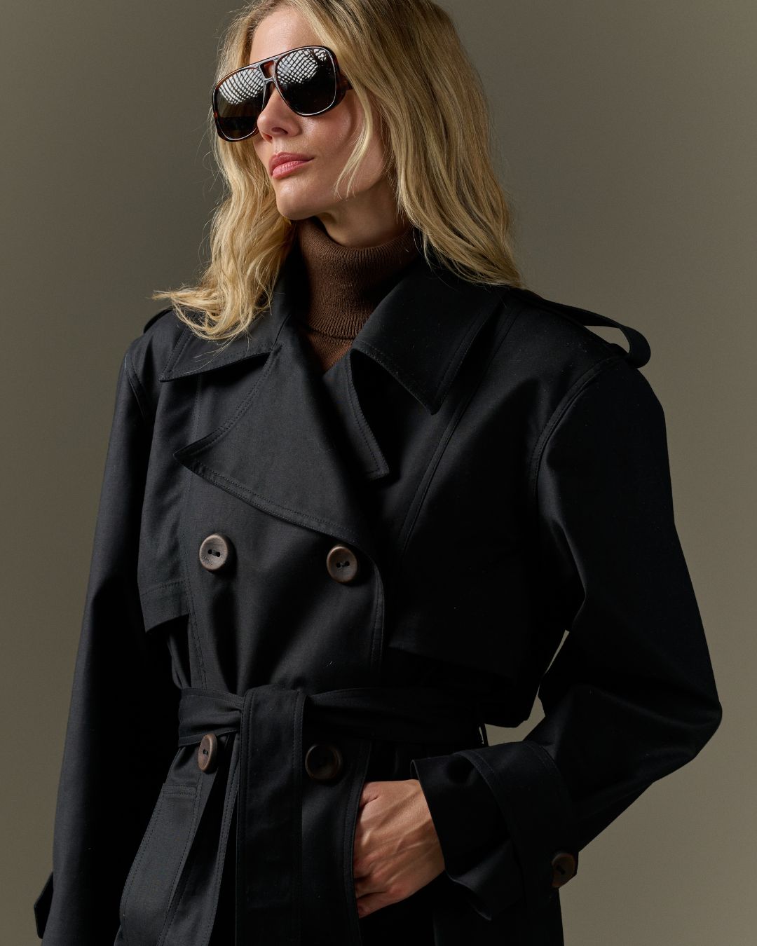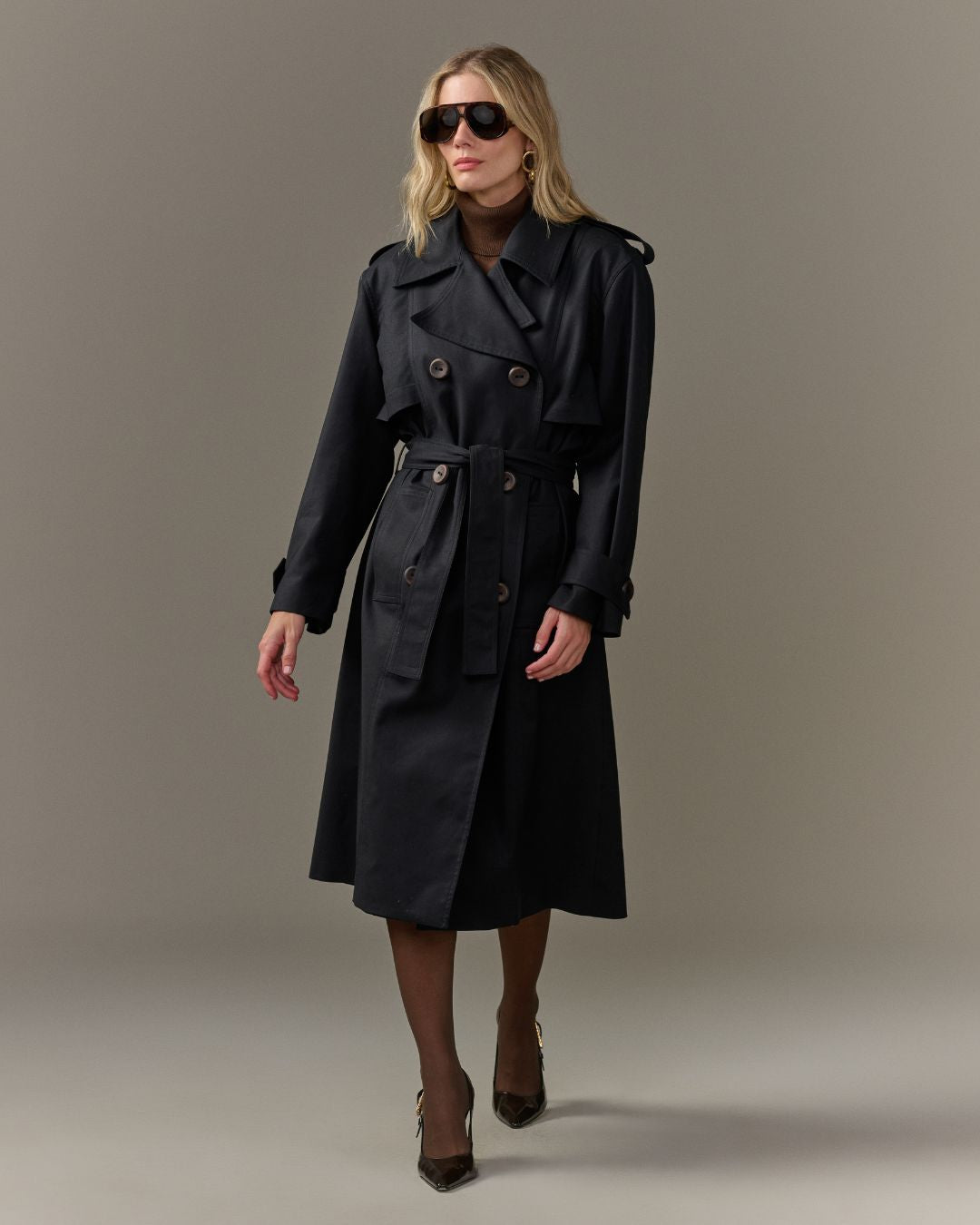 Clássico indispensável do guarda-roupa, este trench coat une elegância e praticidade. Versátil e sofisticado, é ideal para compor looks modernos e funcionais nos dias mais frios, valorizando a silhueta com acabamento impecável.