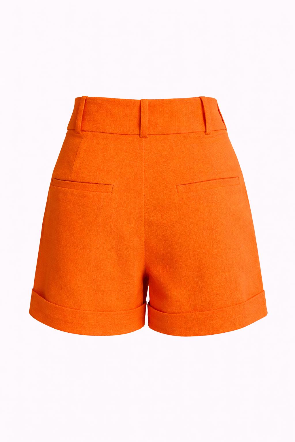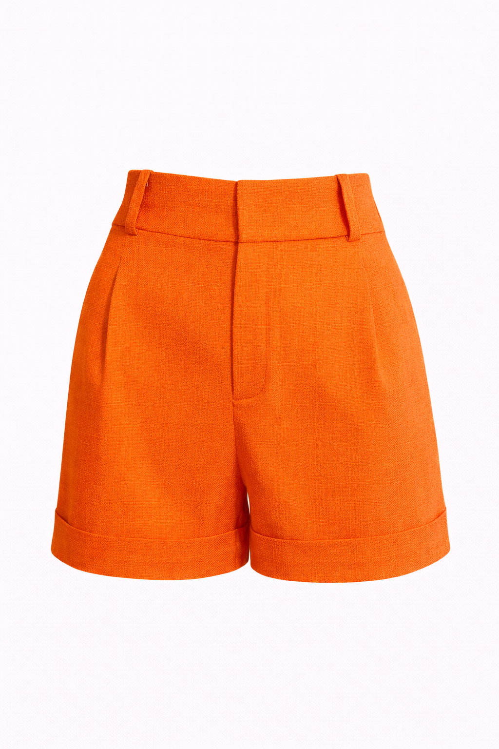 Shorts feminino de alfaiataria em tom laranja vibrante, cintura alta, caimento estruturado e acabamento refinado. Elegante e versátil.