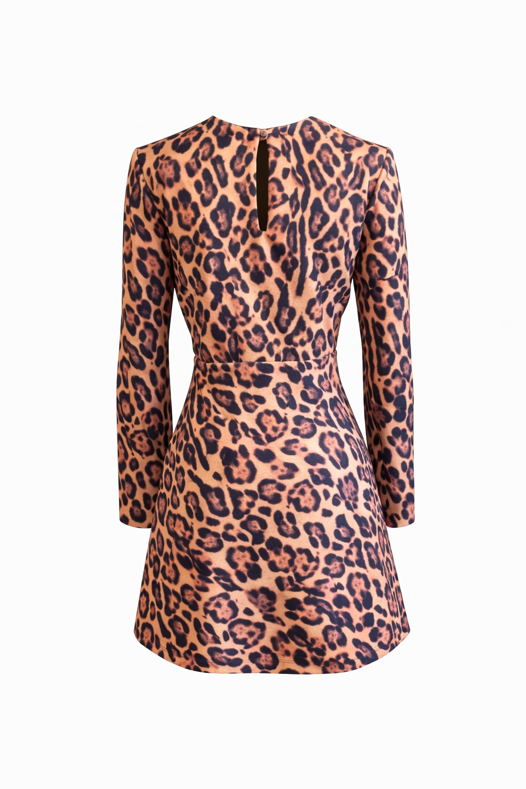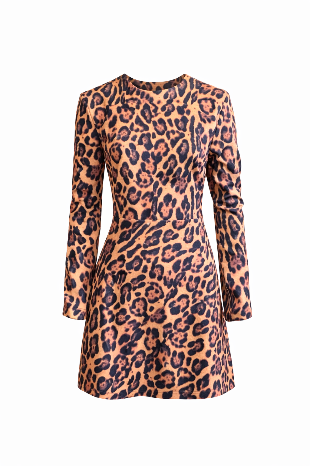Vestido curto em animal print com padronagem inspirada na estampa de onça, trazendo personalidade e sofisticação ao visual. Possui modelagem ajustada ao corpo, que valoriza a silhueta, mangas longas e decote fechado, equilibrando elegância e modernidade.